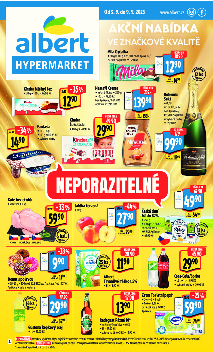 Albert Albert Hypermarket od 03.09.2025 Nabídka letáku platí od 03.09.2025 do 09.09.2025 Leták zde ke stažení v pdf