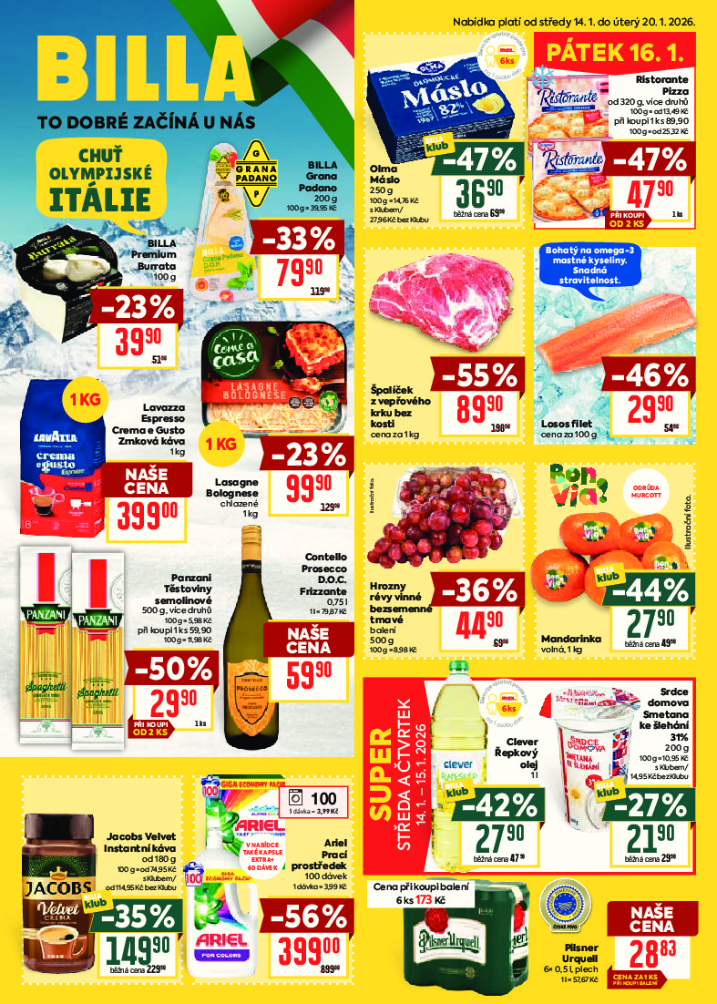 Billa Billa velký od 14.01.2026 Nabídka letáku platí od 14.01.2026 do 20.01.2026 Leták zde ke stažení v pdf