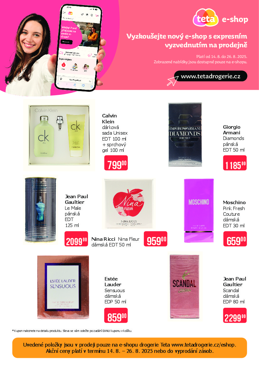 Ostatní Drogerie Teta aktuální leták od 14.08.2025 Nabídka letáku platí od 14.08.2025 do 26.08.2025 Leták zde ke stažení v pdf