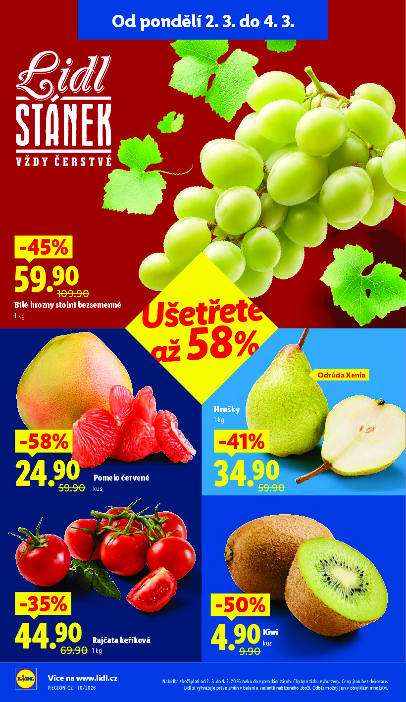 Lidl Lidl aktuální leták od 02.03.2026 Nabídka letáku platí od 02.03.2026 do 04.03.2026 Leták zde ke stažení v pdf