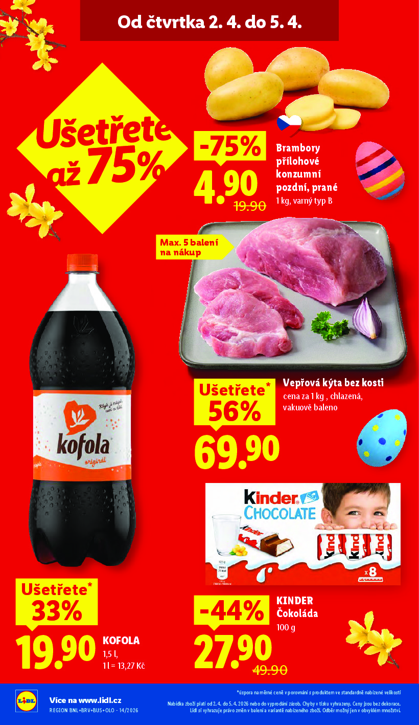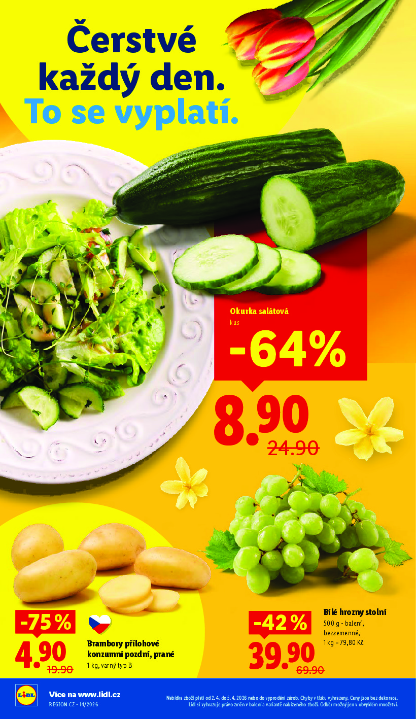 Lidl Lidl aktuální leták od 02.04.2026 Nabídka letáku platí od 02.04.2026 do 05.04.2026 Leták zde ke stažení v pdf