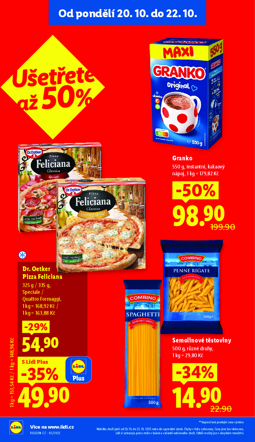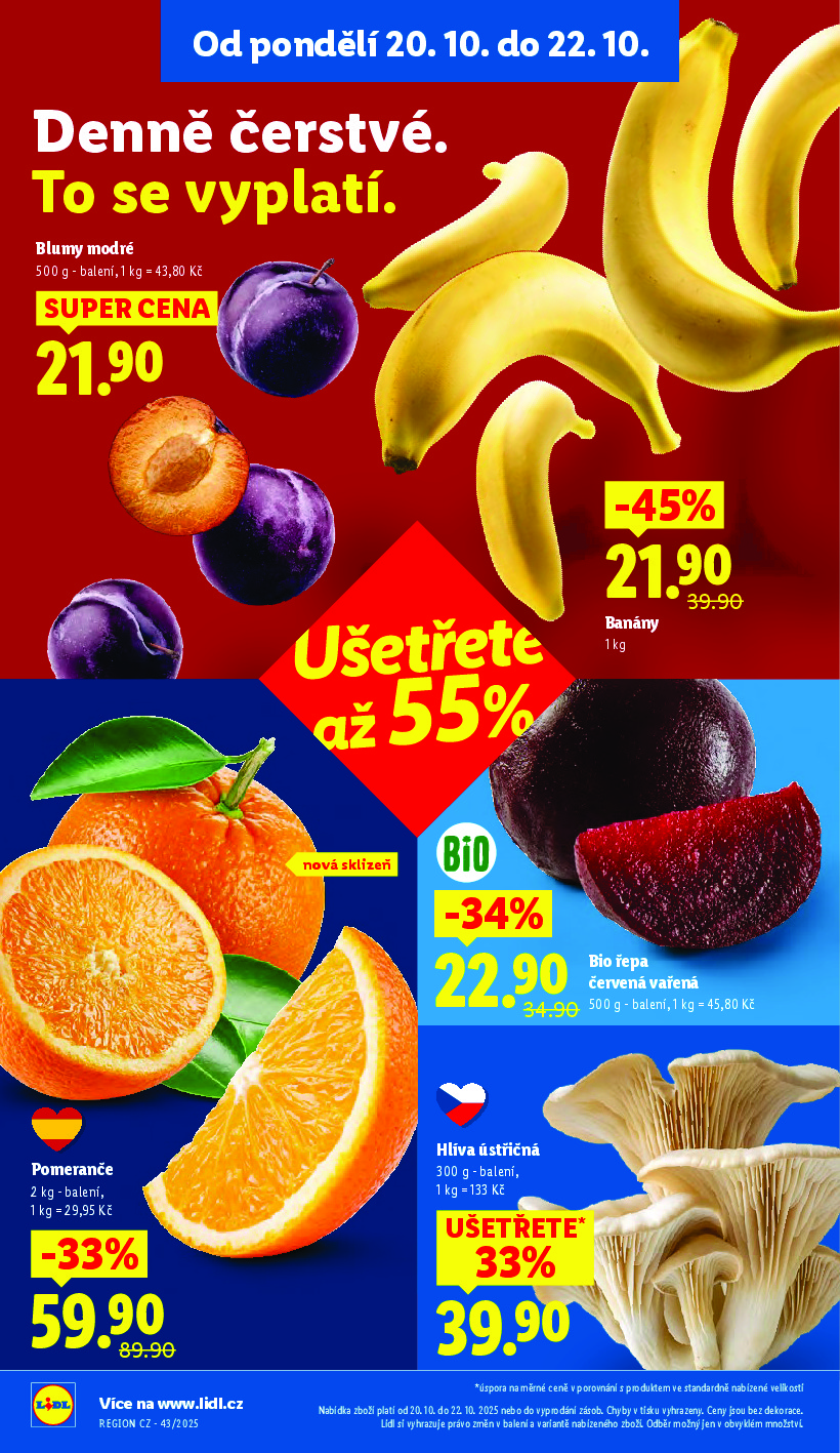 Lidl Lidl aktuální leták od 20.10.2025 Nabídka letáku platí od 20.10.2025 do 22.10.2025 Leták zde ke stažení v pdf