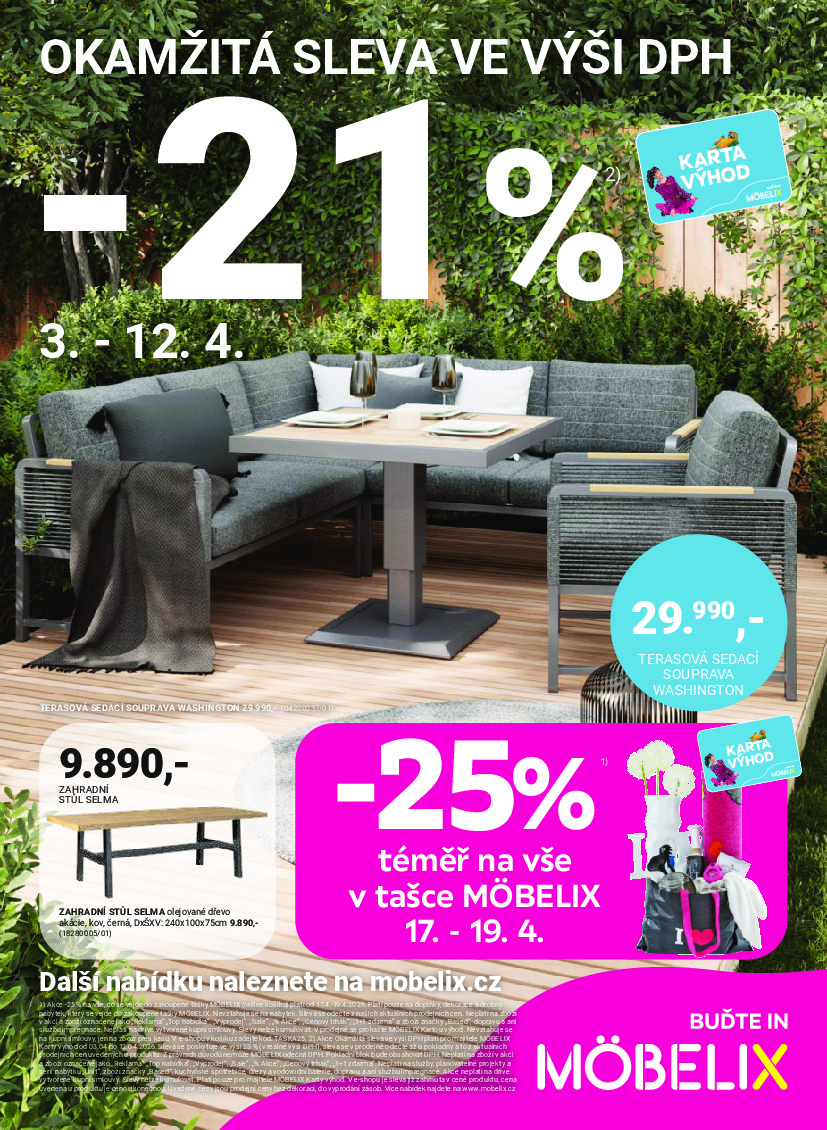 Mobelix Mobelix aktuální leták od 06.04.2026 Nabídka letáku platí od 06.04.2026 do 03.05.2026 Leták zde ke stažení v pdf