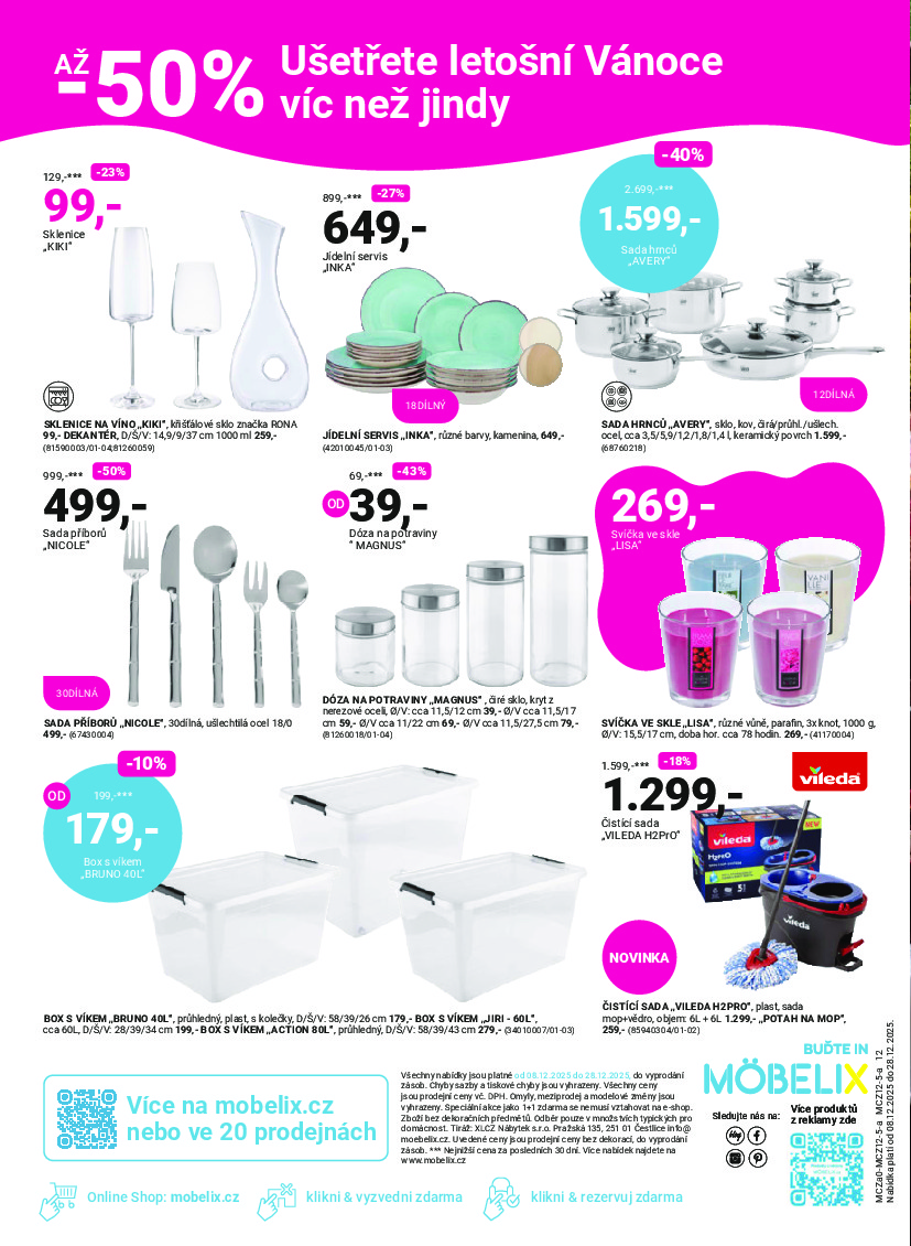 Mobelix Mobelix aktuální leták od 08.12.2025 Nabídka letáku platí od 08.12.2025 do 28.12.2025 Leták zde ke stažení v pdf