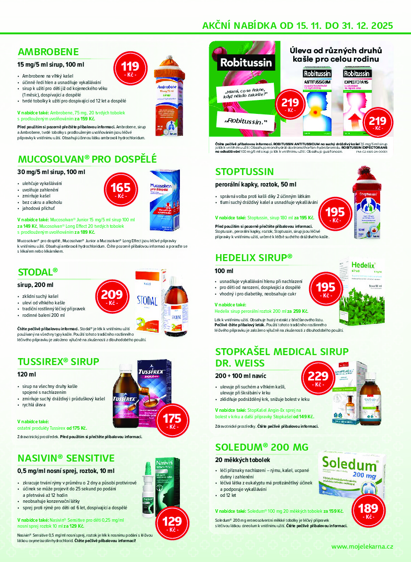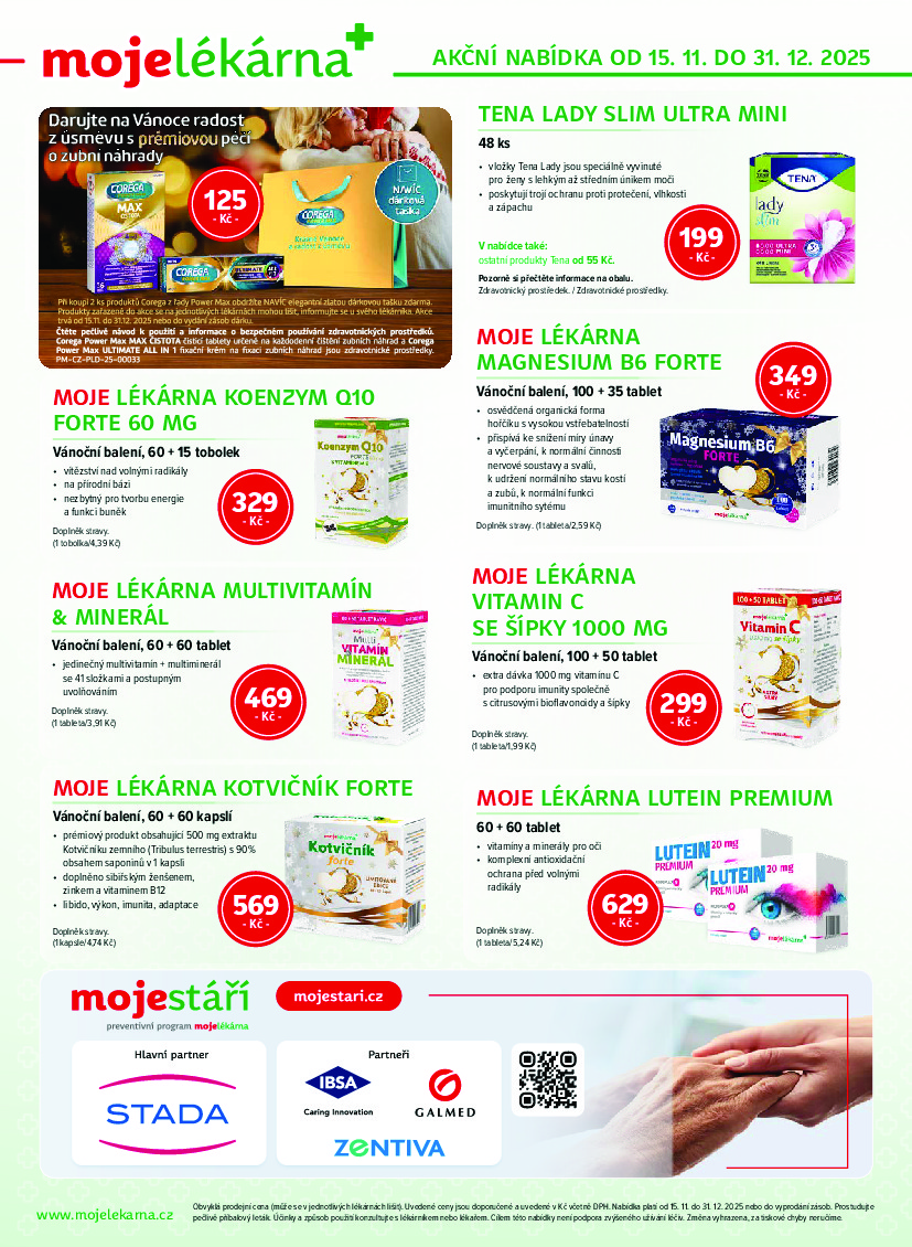 Moje lékárna Moje lékárna aktuální leták od 15.11.2025 Nabídka letáku platí od 15.11.2025 do 31.12.2025 Leták zde ke stažení v pdf
