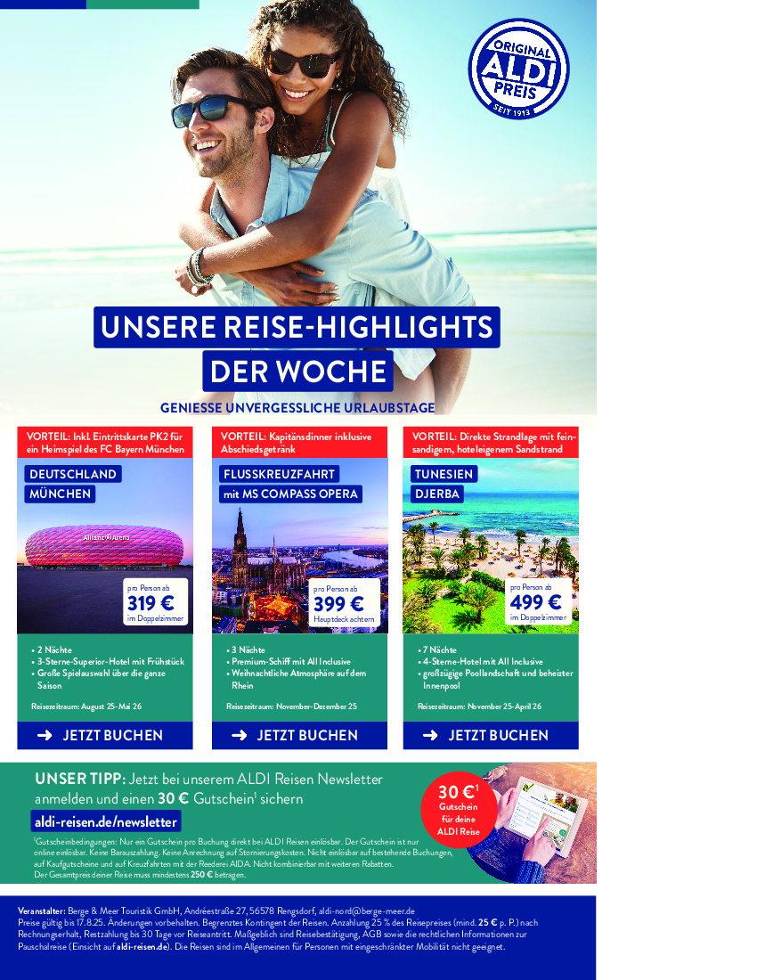 Německo Německo Aldi-Nord.de od 25.08.2025 Nabídka letáku platí od 25.08.2025 do 30.08.2025 Leták zde ke stažení v pdf