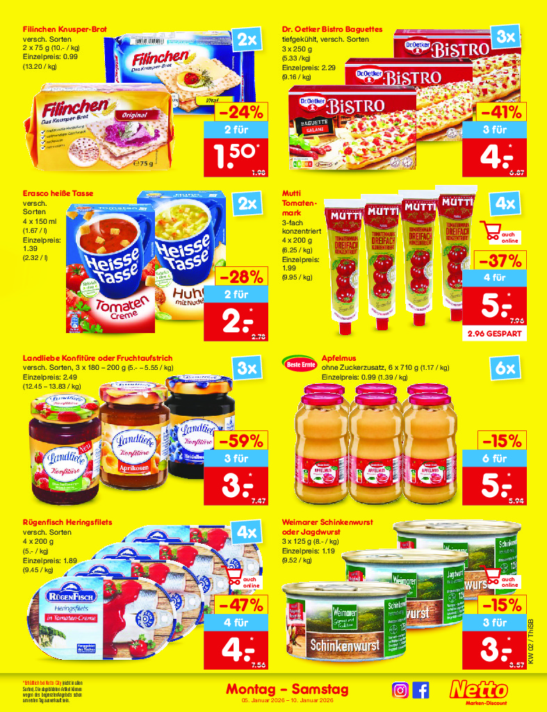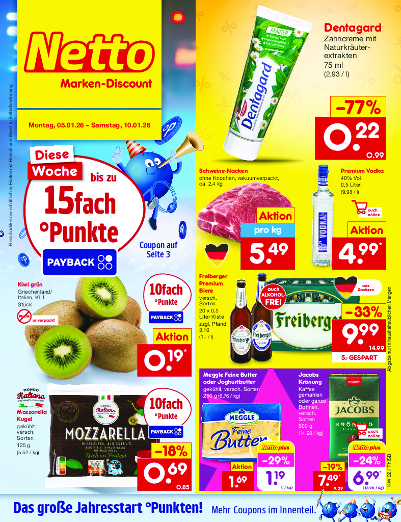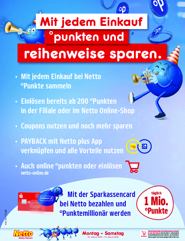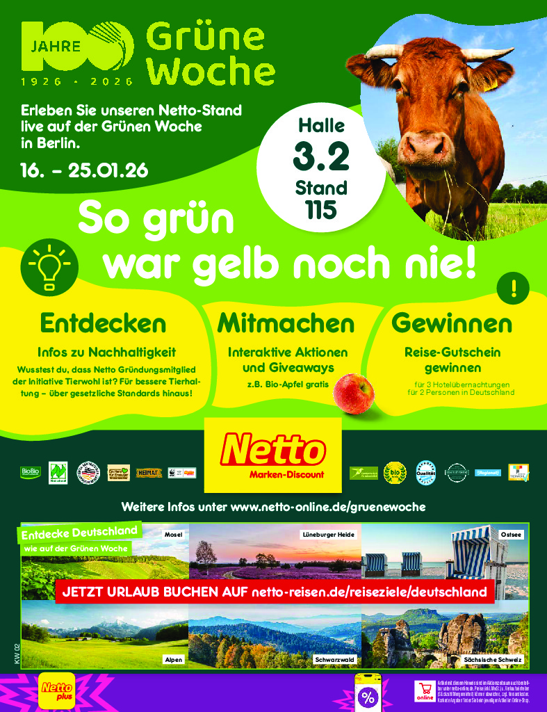 Německo Německo Netto discount. de od 05.01.2026 Nabídka letáku platí od 05.01.2026 do 10.01.2026 Leták zde ke stažení v pdf