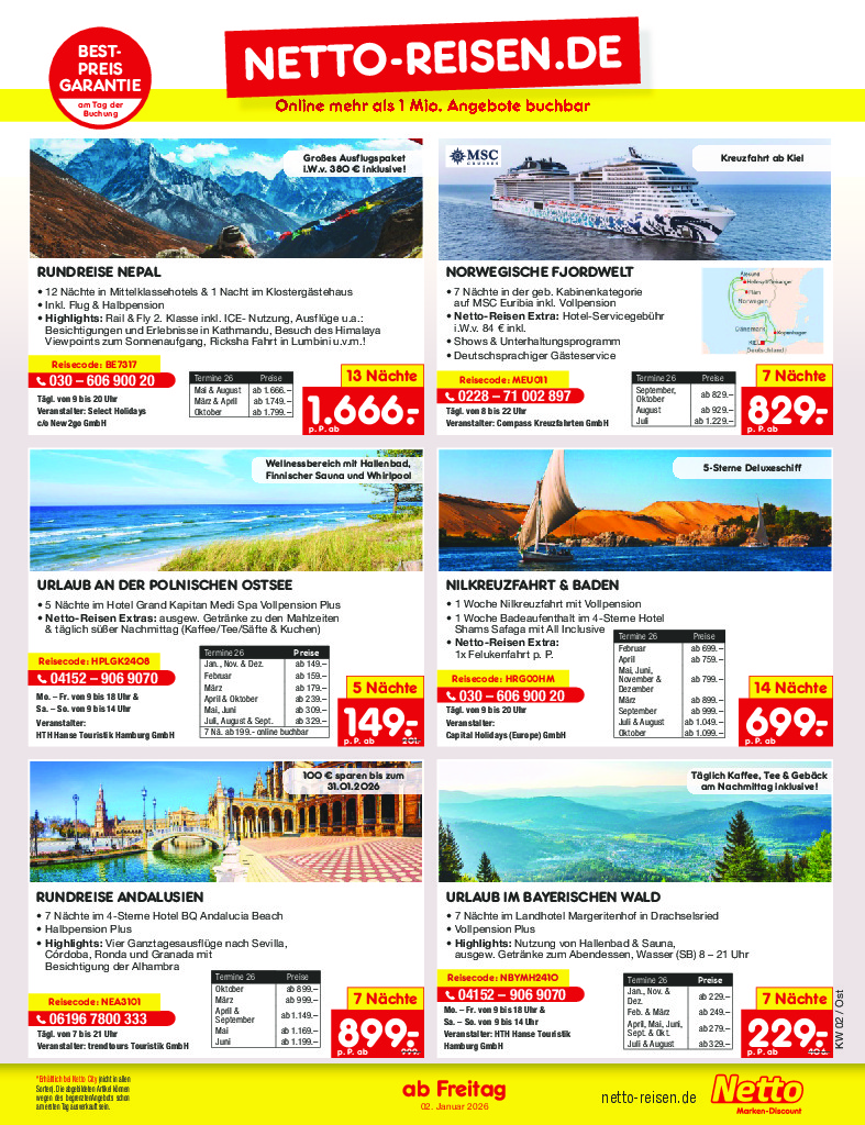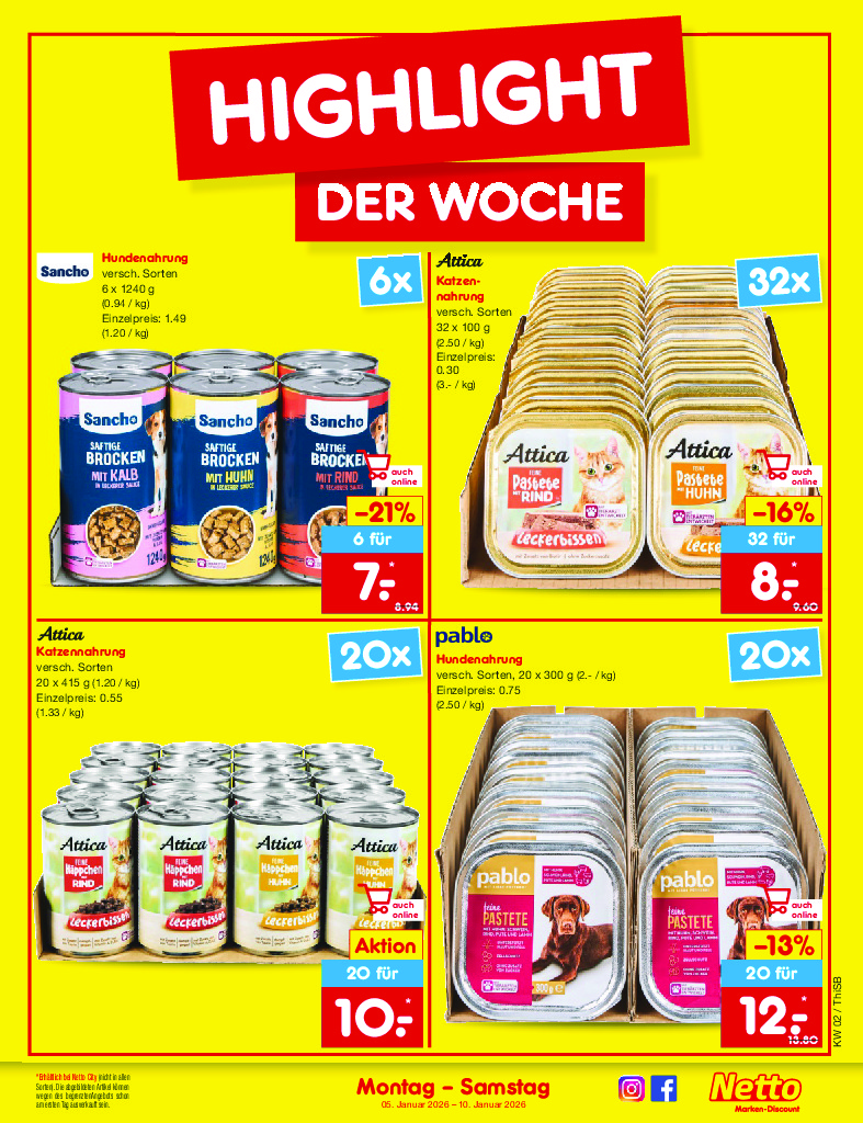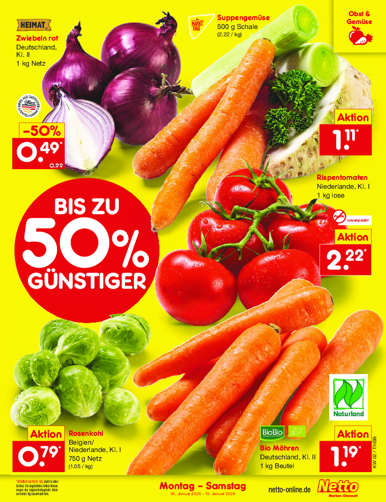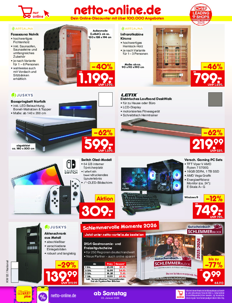 Německo Německo Netto discount. de od 05.01.2026 Nabídka letáku platí od 05.01.2026 do 10.01.2026 Leták zde ke stažení v pdf