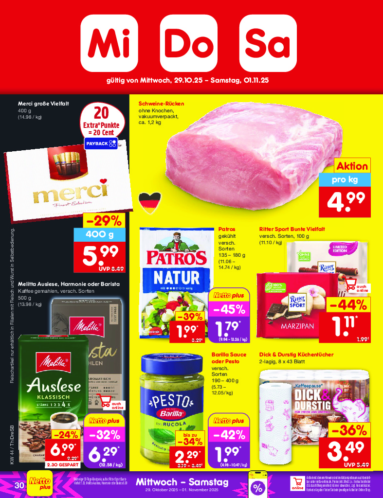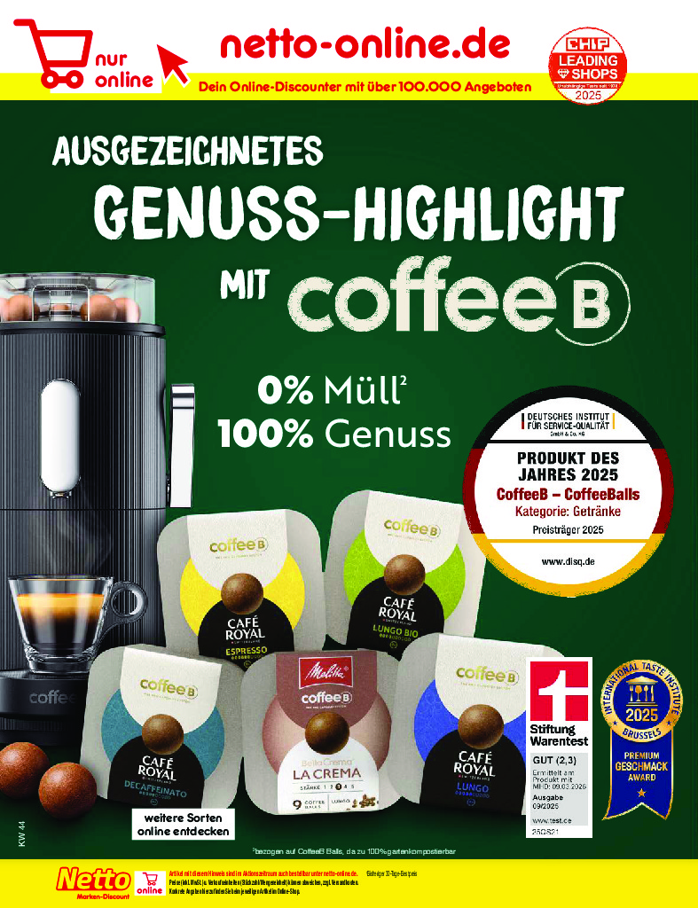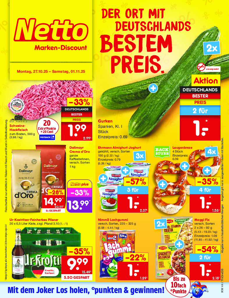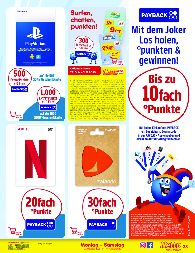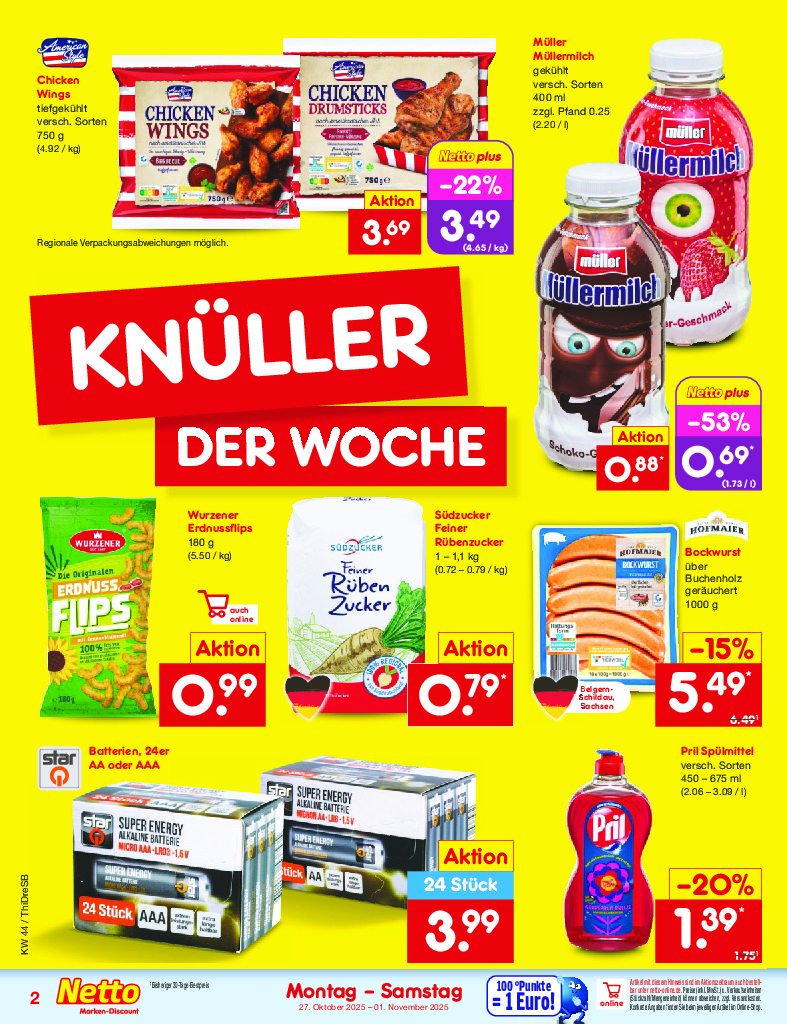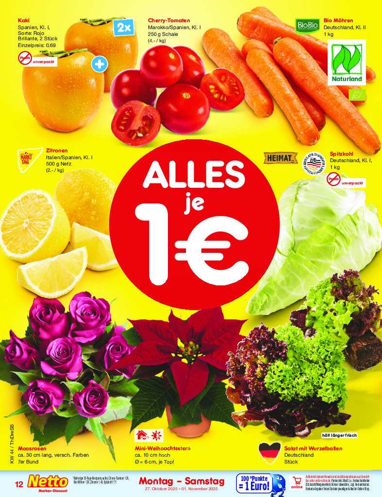 Německo Německo Netto discount. de od 27.10.2025 Nabídka letáku platí od 27.10.2025 do 01.11.2025 Leták zde ke stažení v pdf