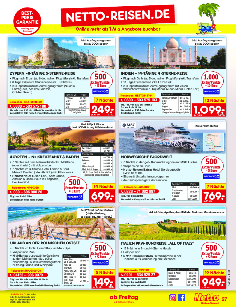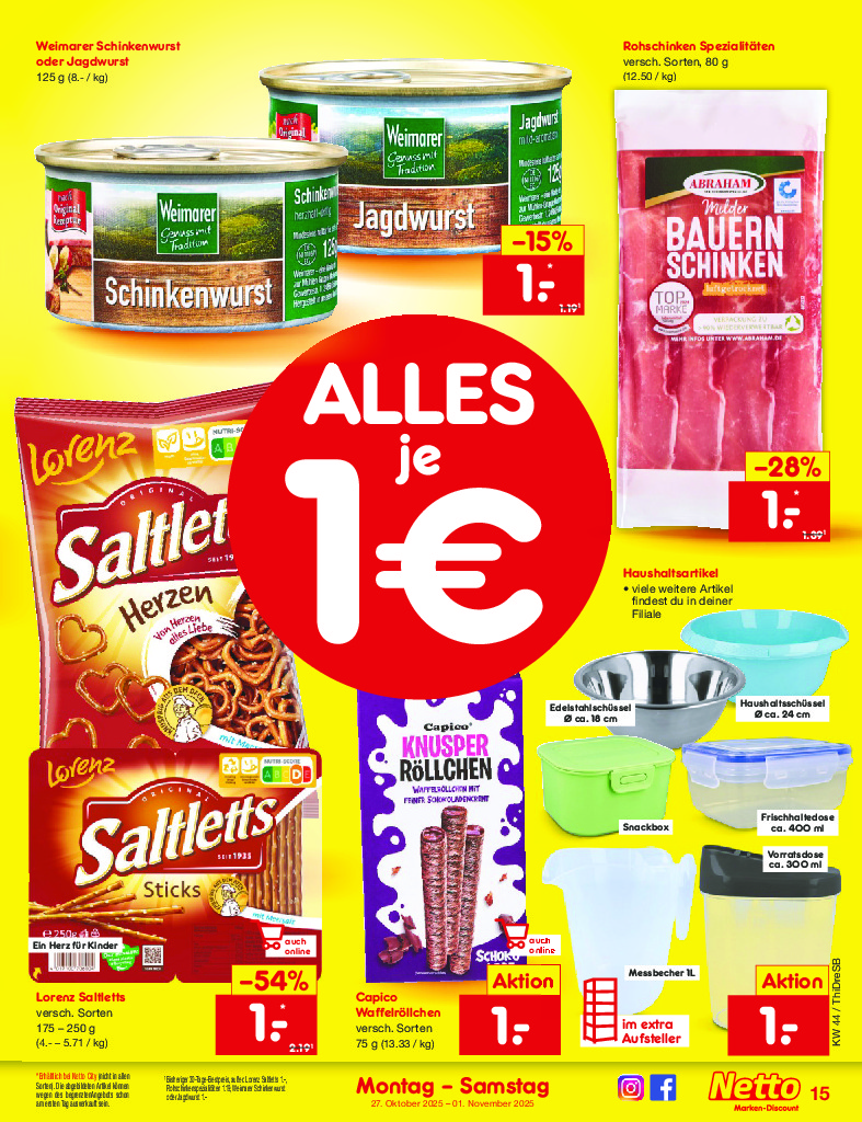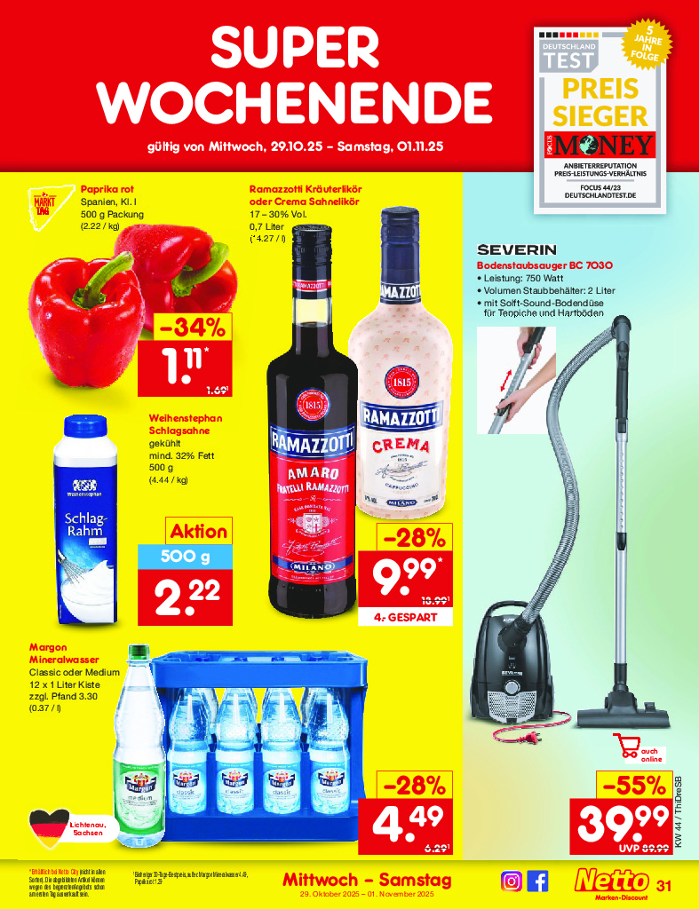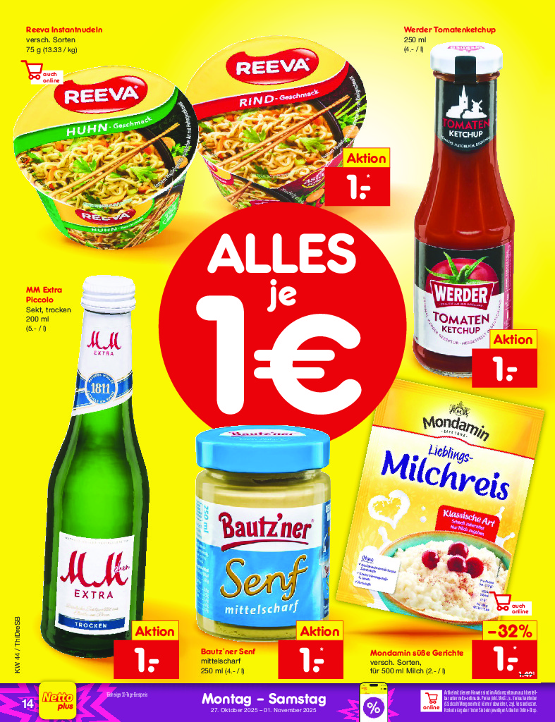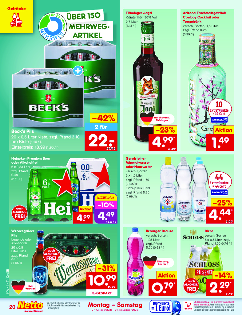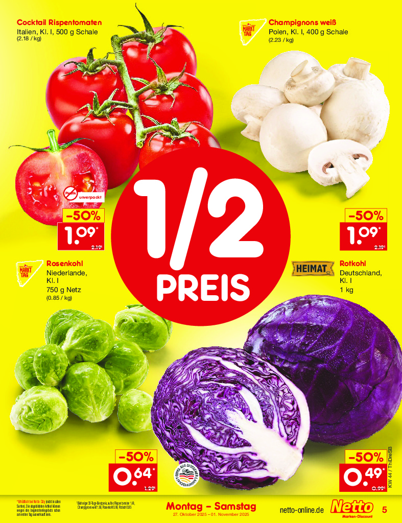 Německo Německo Netto discount. de od 27.10.2025 Nabídka letáku platí od 27.10.2025 do 01.11.2025 Leták zde ke stažení v pdf