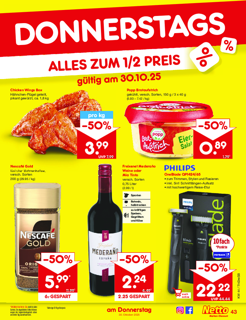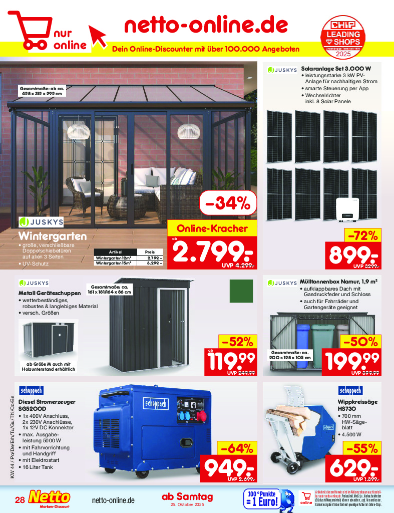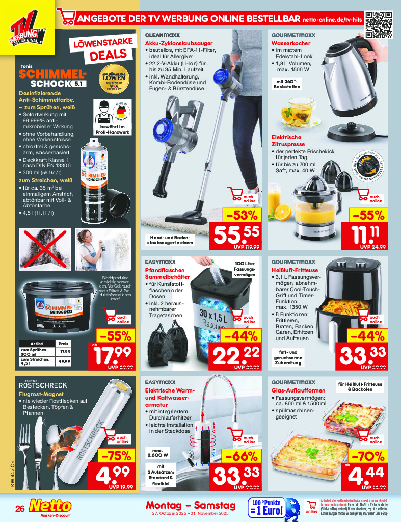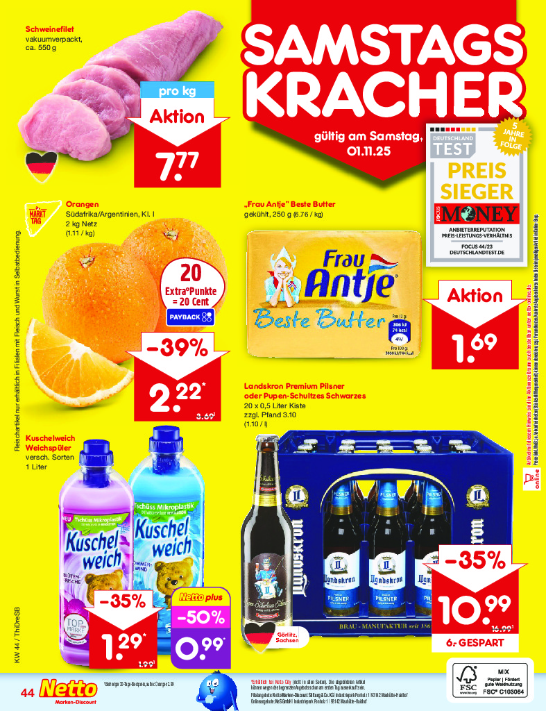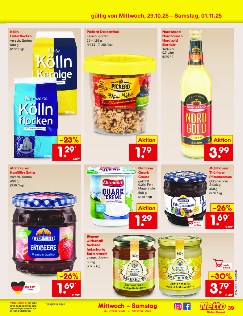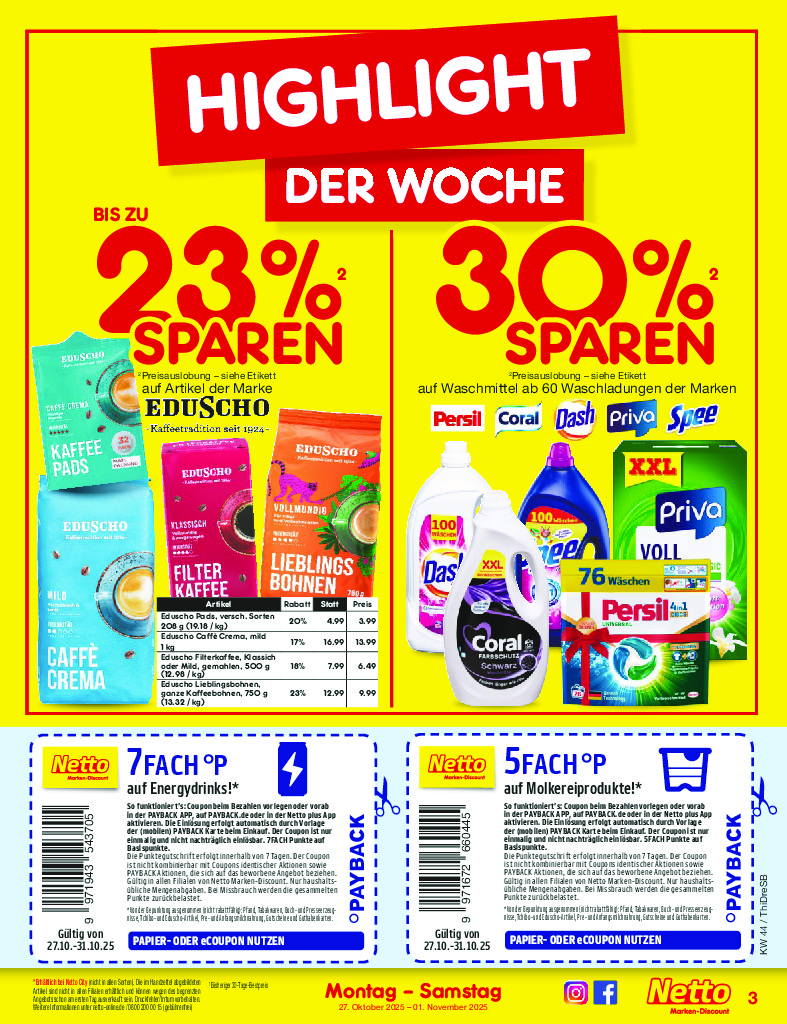 Německo Německo Netto discount. de od 27.10.2025 Nabídka letáku platí od 27.10.2025 do 01.11.2025 Leták zde ke stažení v pdf
