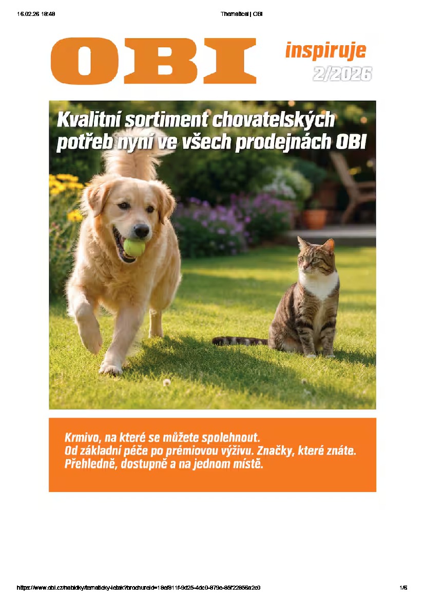 OBI OBI aktuální leták od 15.02.2026 Nabídka letáku platí od 15.02.2026 do 14.03.2026 Leták zde ke stažení v pdf