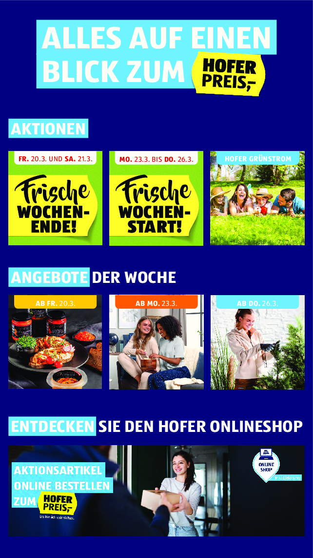 Rakousko Rakousko Hofer.at od 20.03.2026 Nabídka letáku platí od 20.03.2026 do 26.03.2026 Leták zde ke stažení v pdf