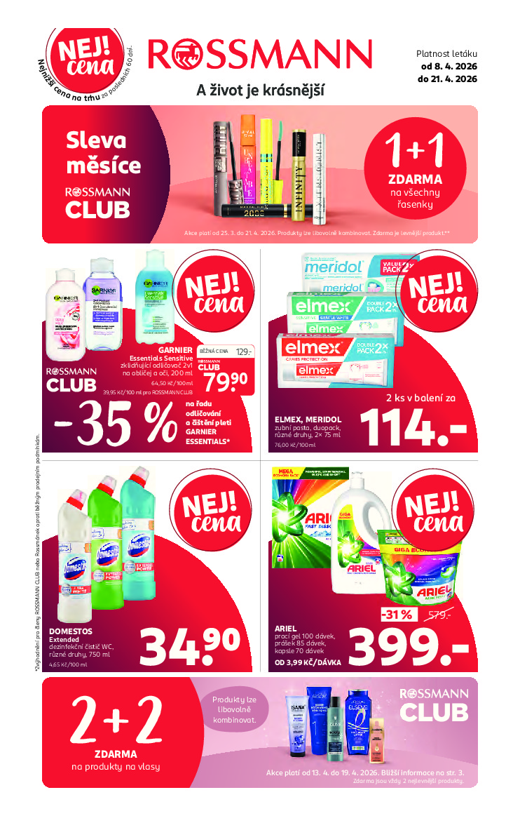 Rossmann Rossmann aktuální leták od 08.04.2026 Nabídka letáku platí od 08.04.2026 do 21.04.2026 Leták zde ke stažení v pdf