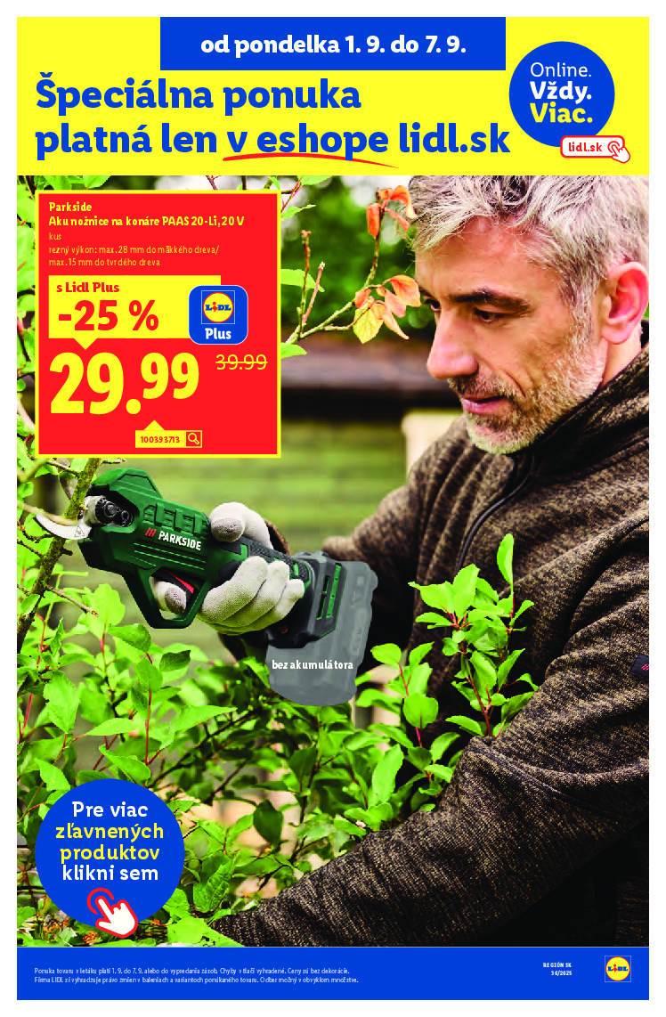 Slovensko Slovensko Lidl.sk od 01.09.2025 Nabídka letáku platí od 01.09.2025 do 07.09.2025 Leták zde ke stažení v pdf