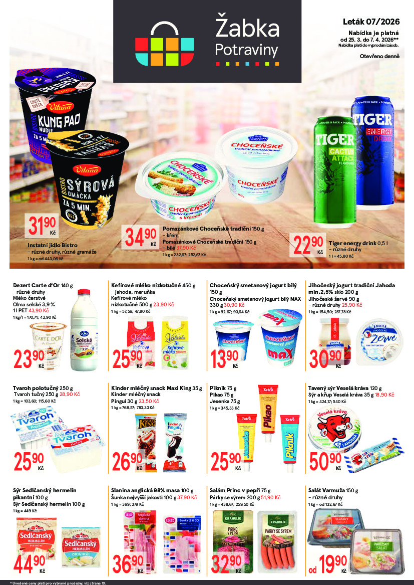 Žabka Žabka aktuální leták od 25.03.2026 Nabídka letáku platí od 25.03.2026 do 07.04.2026 Leták zde ke stažení v pdf